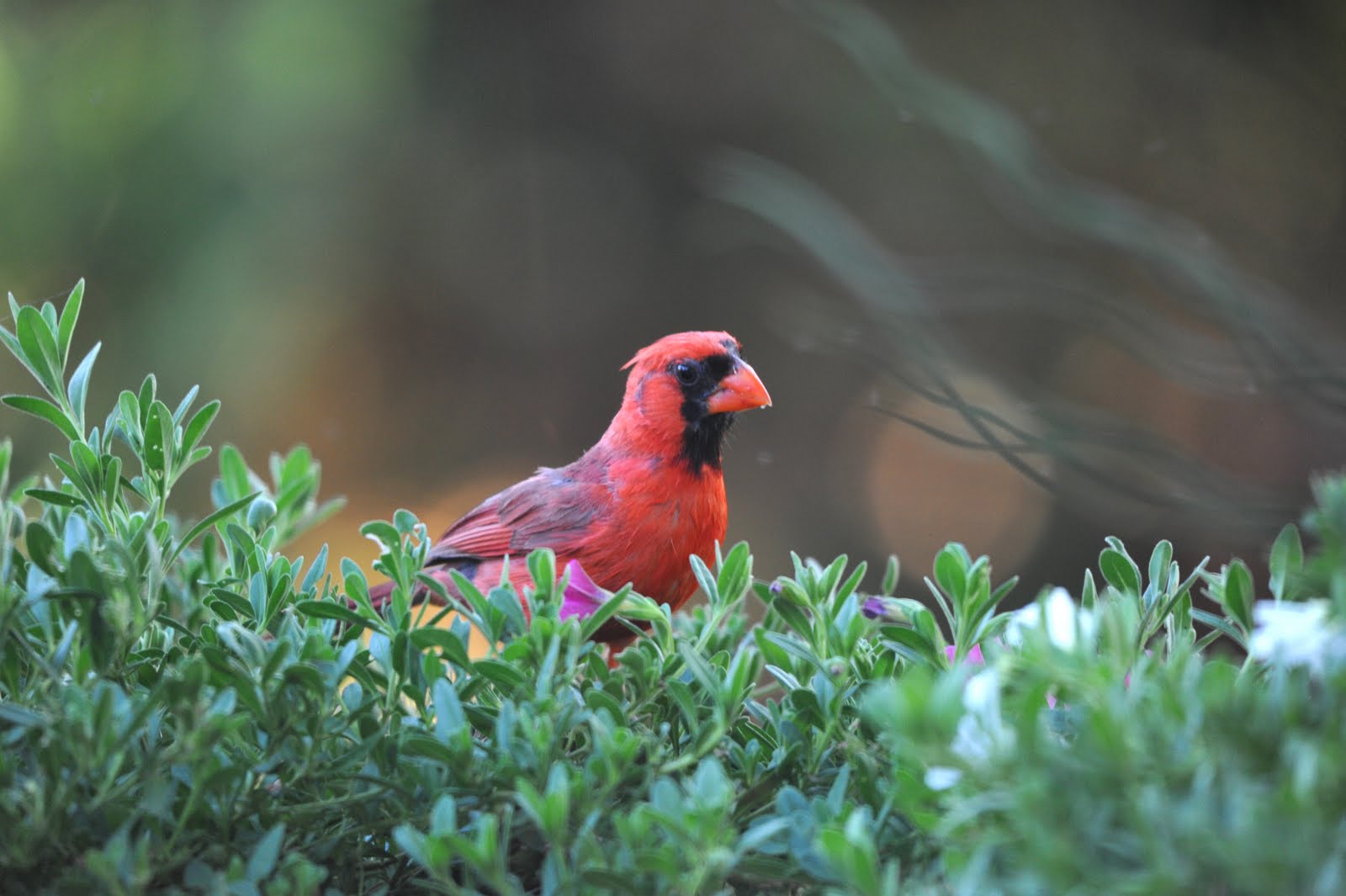 A cardinal decided to check out our planter box.  Here are a couple of pictures: